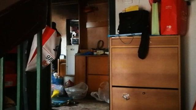 2019年1月19日,记者在事发家庭门口看到,客厅里非常混乱,满地都是东西,但是被烧的痕迹不是很重;而靠南的卧室烧得比较严重,南面的玻璃已经全部破碎。
